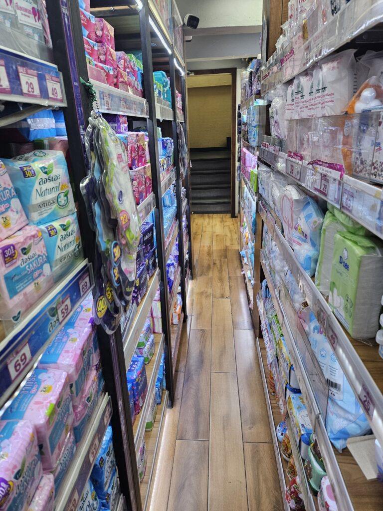 Umm, skinniest aisle in the world? I had to walk sideways, searching for sanitary pads. I ended up doing squats to read the labels on the bottom row. Good way to get in a workout while shopping.