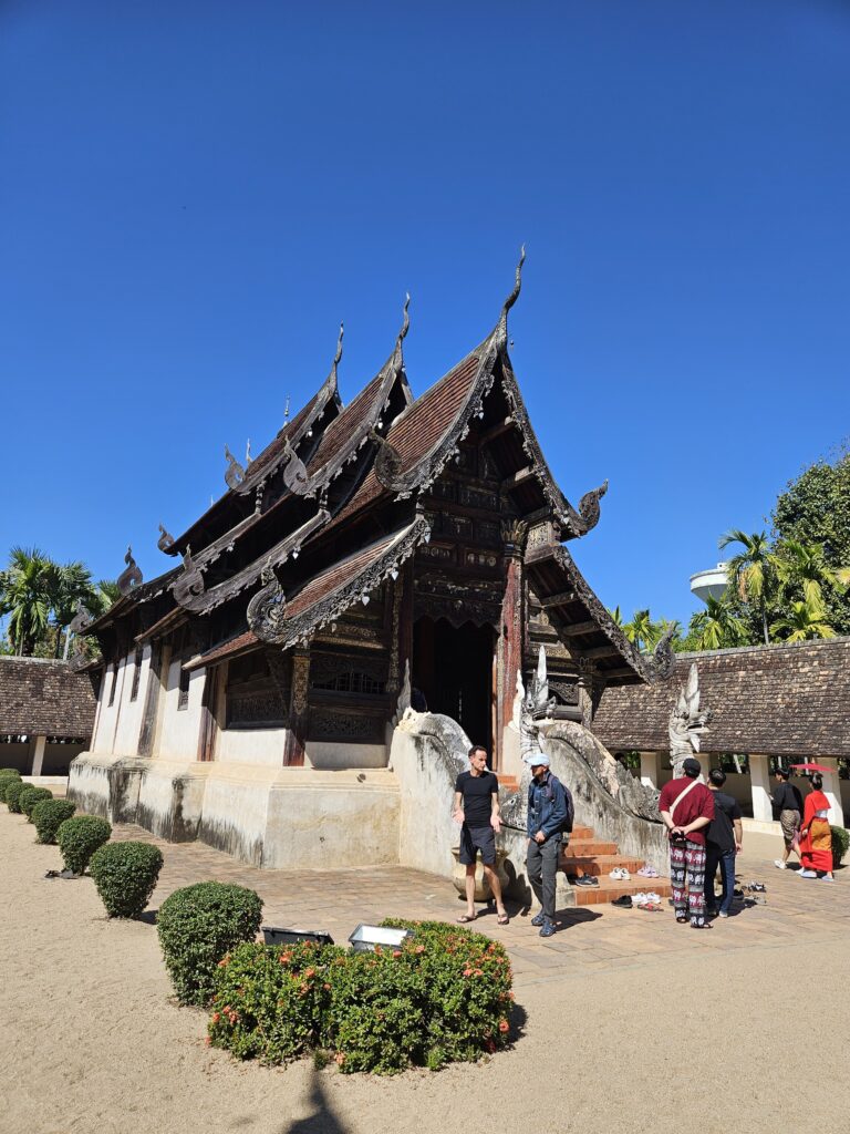 An old-style Thai Buddhist temple. It isn’t as garish as other architectural styles, instead emphasizing unpainted wood and silver fixtures.