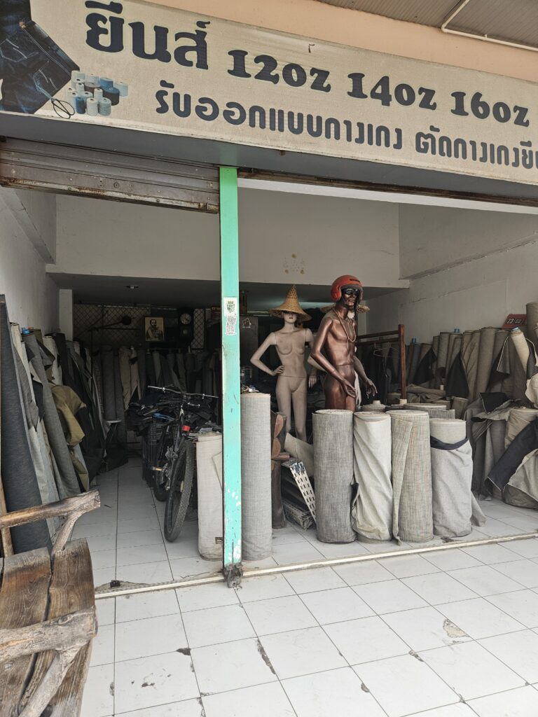 The people of this clothing shop have offered flower garlands, green-skinned limes, and “Elephant” brand cigarettes wrapped in banana leaf.
