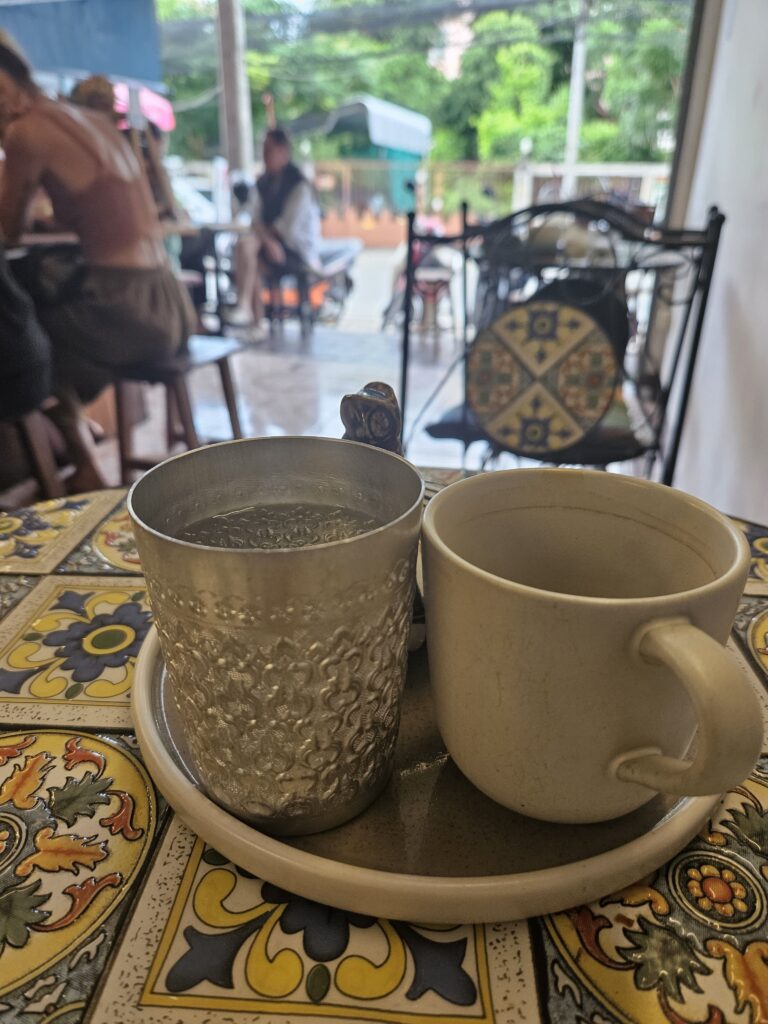 Another cute cafe that features colorful tilework. They serve water in traditional Thai silver cups with every coffee order.